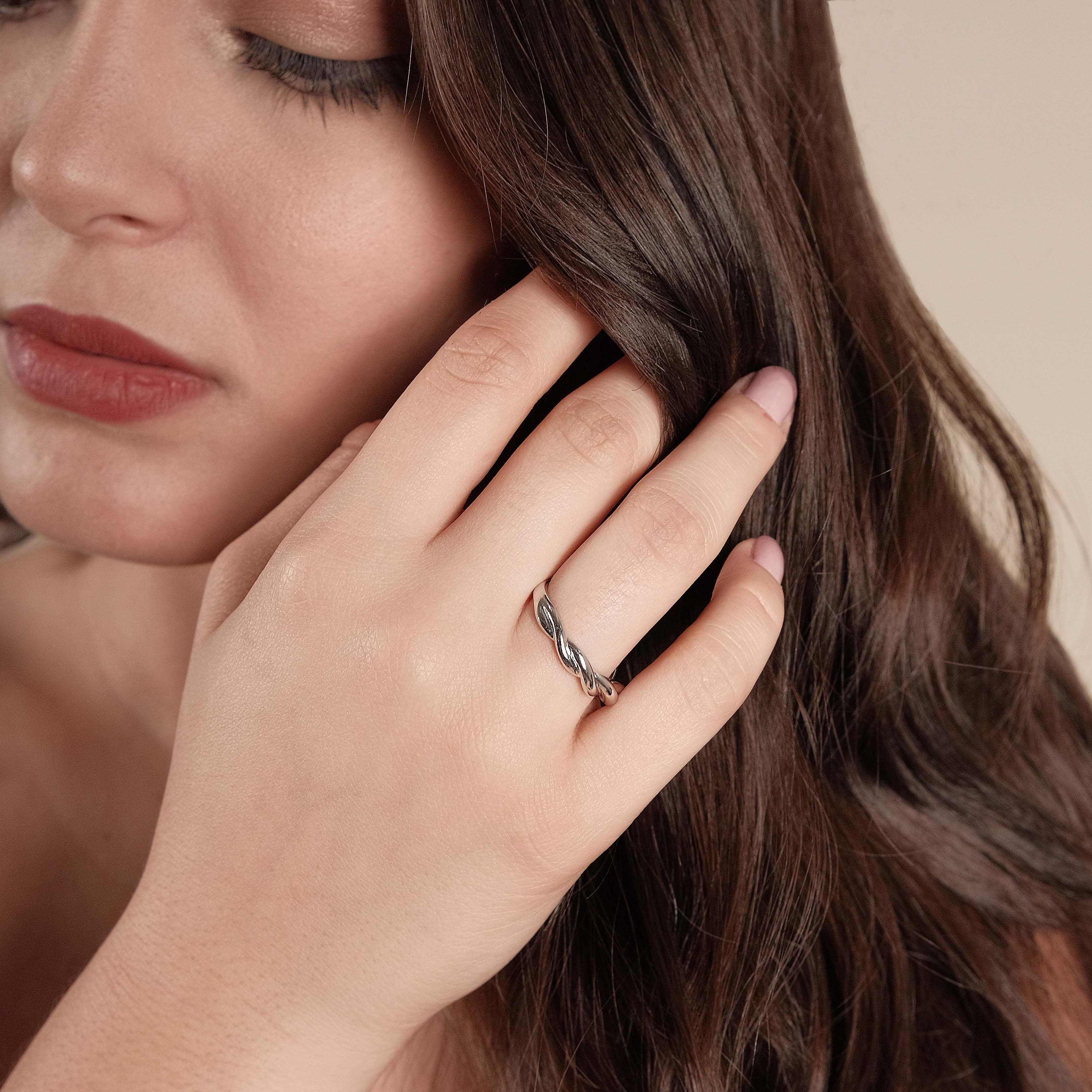 Anel Liso Torcido Tamanho 21 Ródio Branco