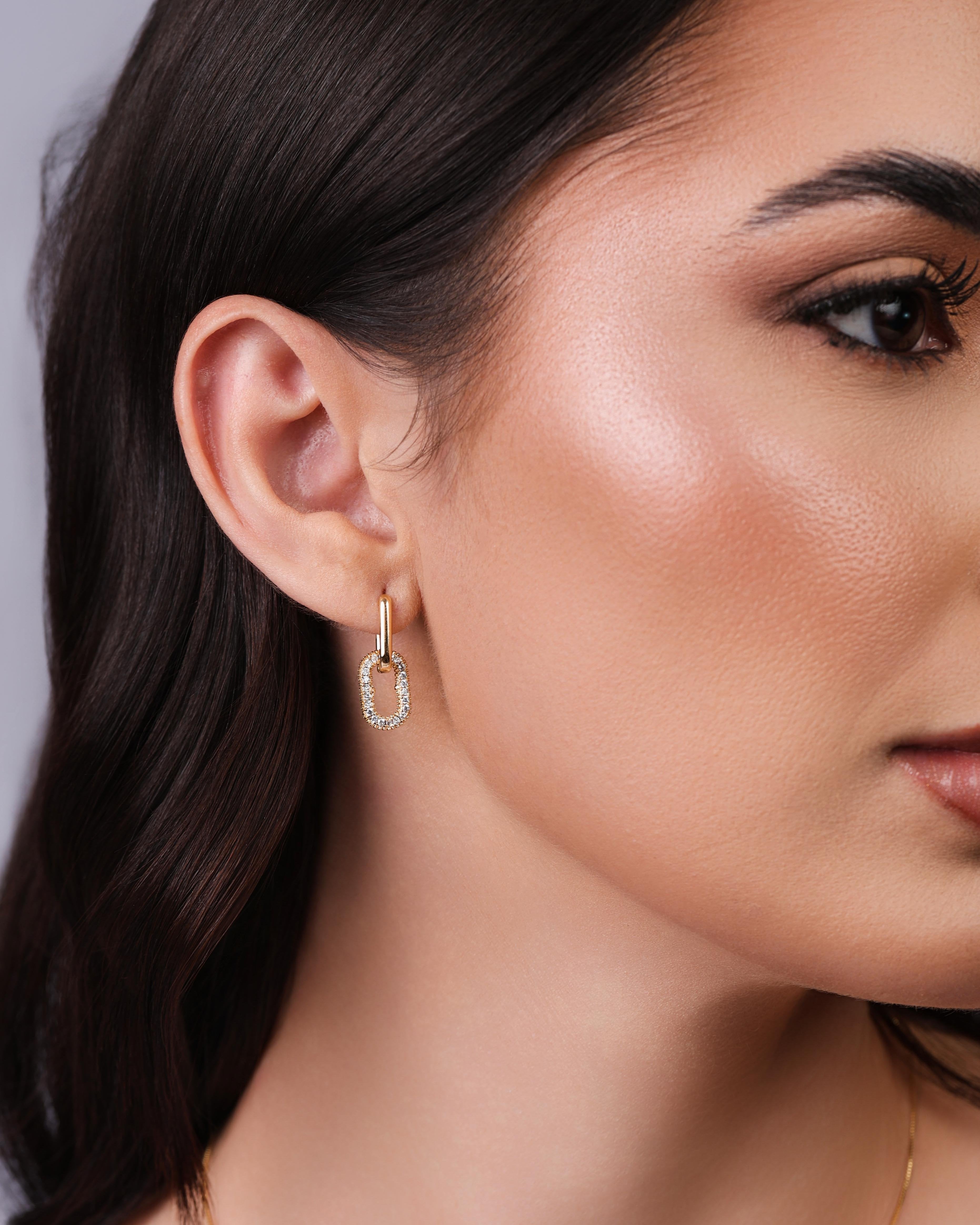Design: Argola click com formato oval duplo, sendo uma das partes cravejada em cristais, acabamento delicado e elegante.