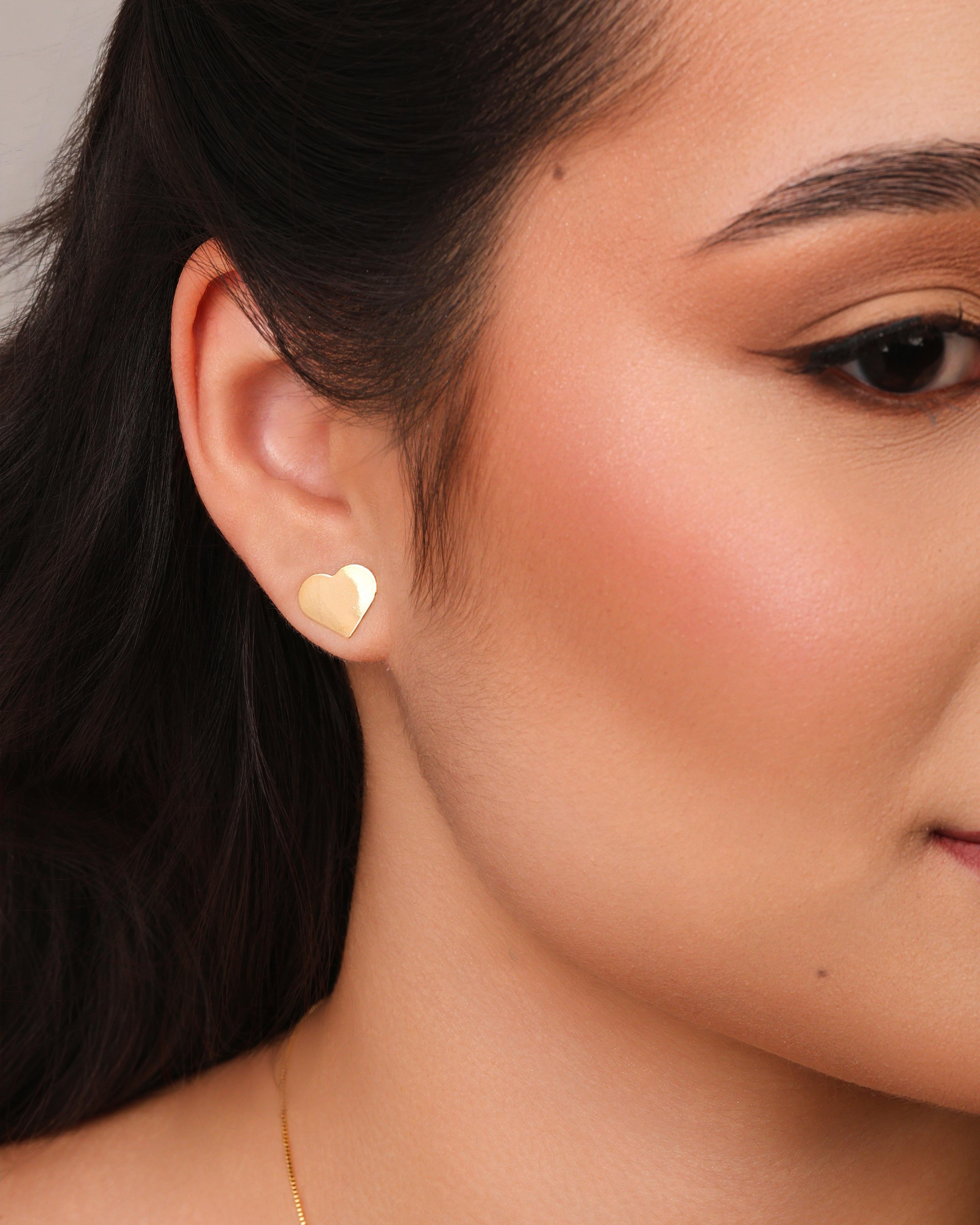 Brinco Coração Flat Liso 1.0 cm Banhado a Ouro 18K