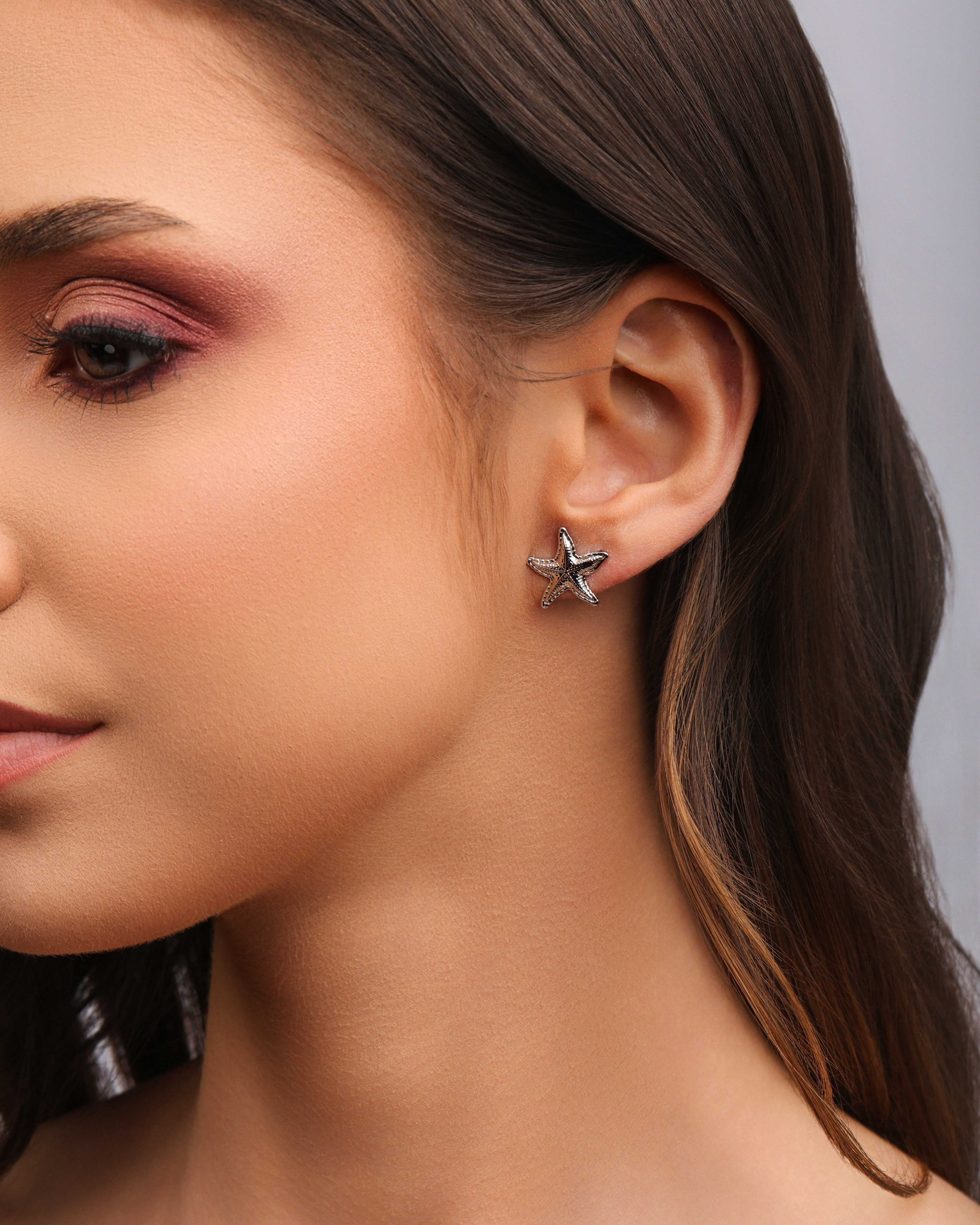 Design: Brinco no formato de estrela do mar, com textura trabalhada e 15 mm de medida.