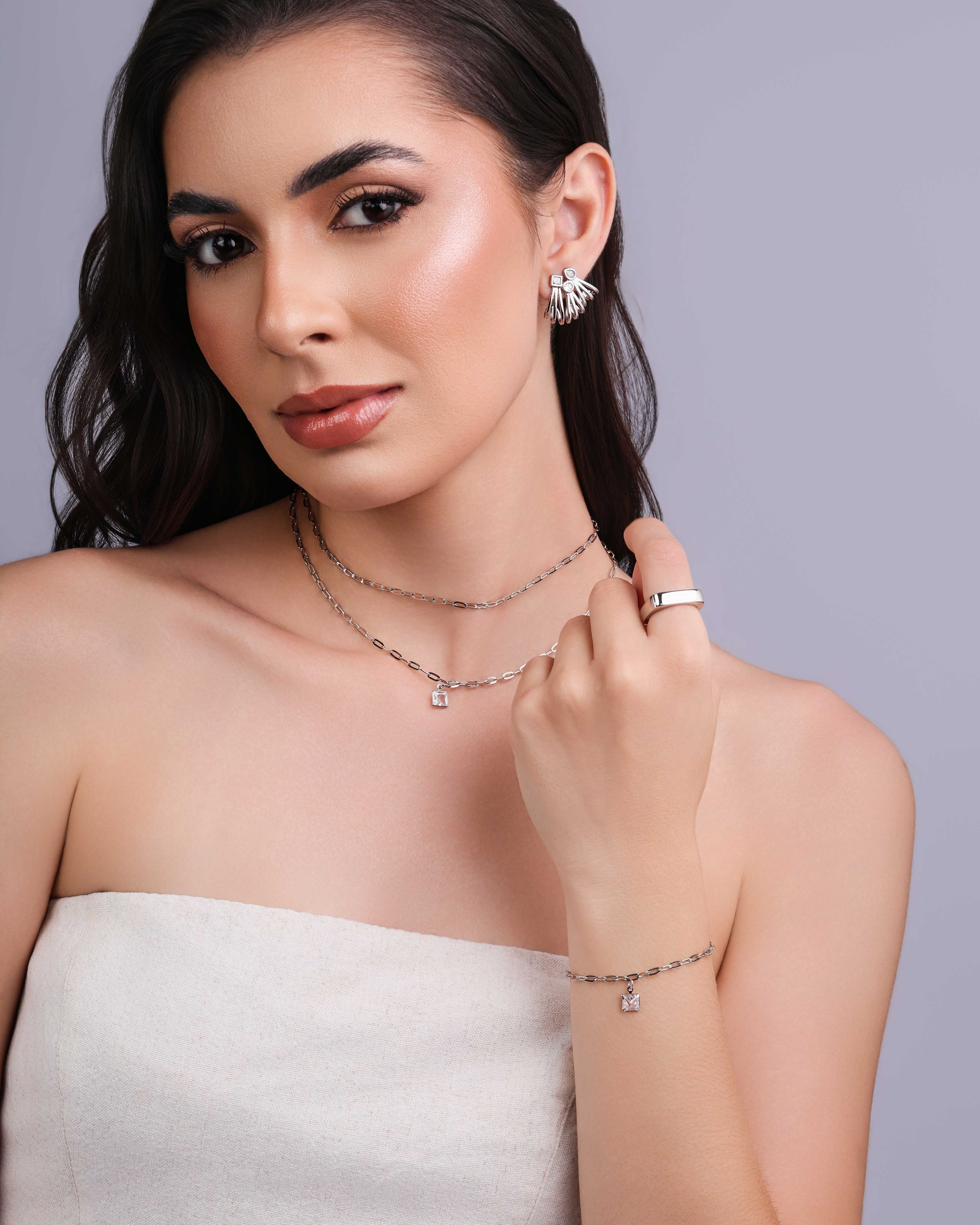O banho ródio branco oferece conforto e resistência para o uso diário, além de facilitar combinações com diferentes estilos. É uma semijoia que transmite presença de forma equilibrada e atual.