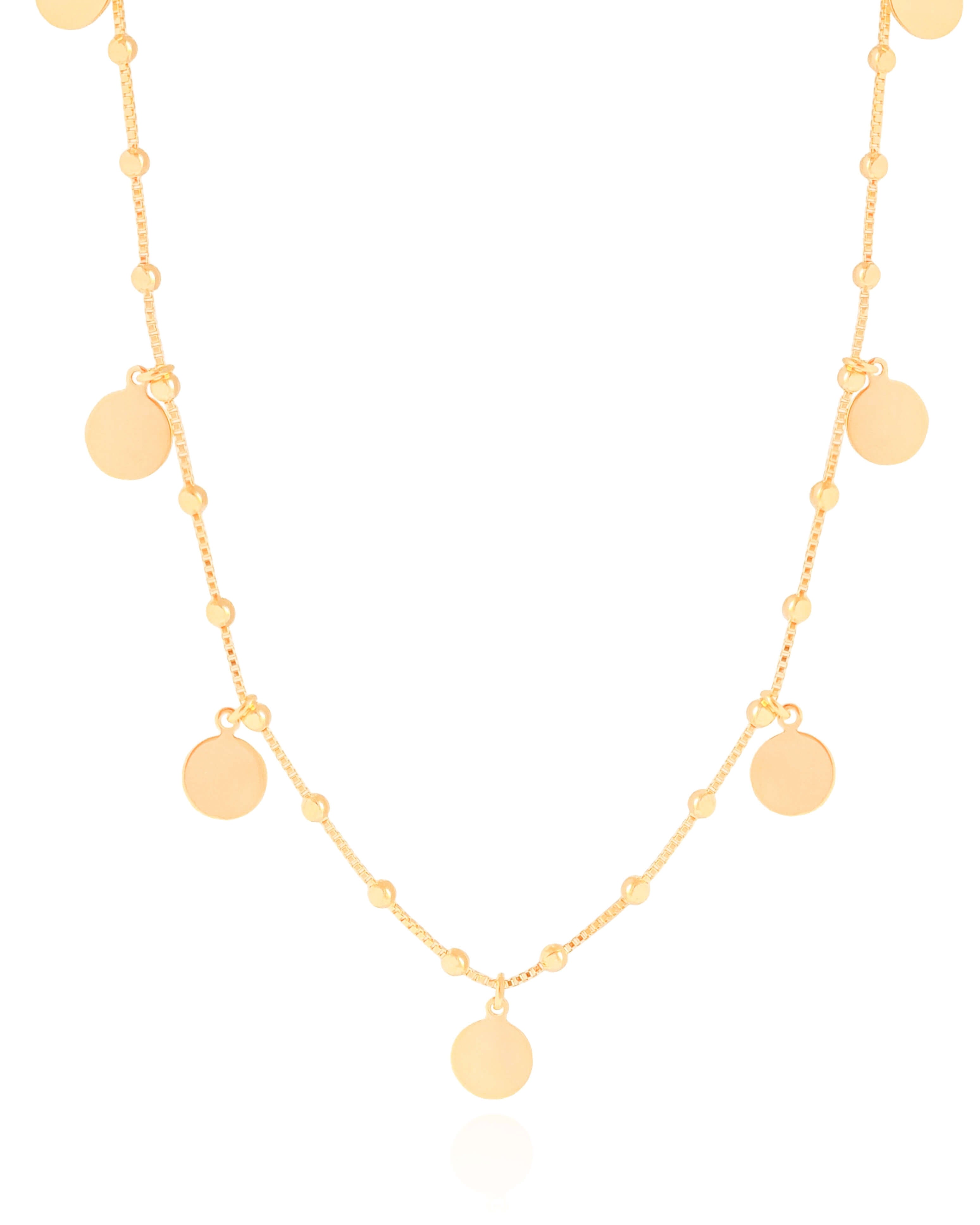 A Choker Bolinhas e Medalhas Lisas é uma peça leve e cheia de movimento, perfeita para trazer brilho sutil ao visual. As bolinhas intercaladas deixam a corrente delicada, enquanto as medalhas lisas criam um balanço elegante que valoriza o colo com naturalidade.