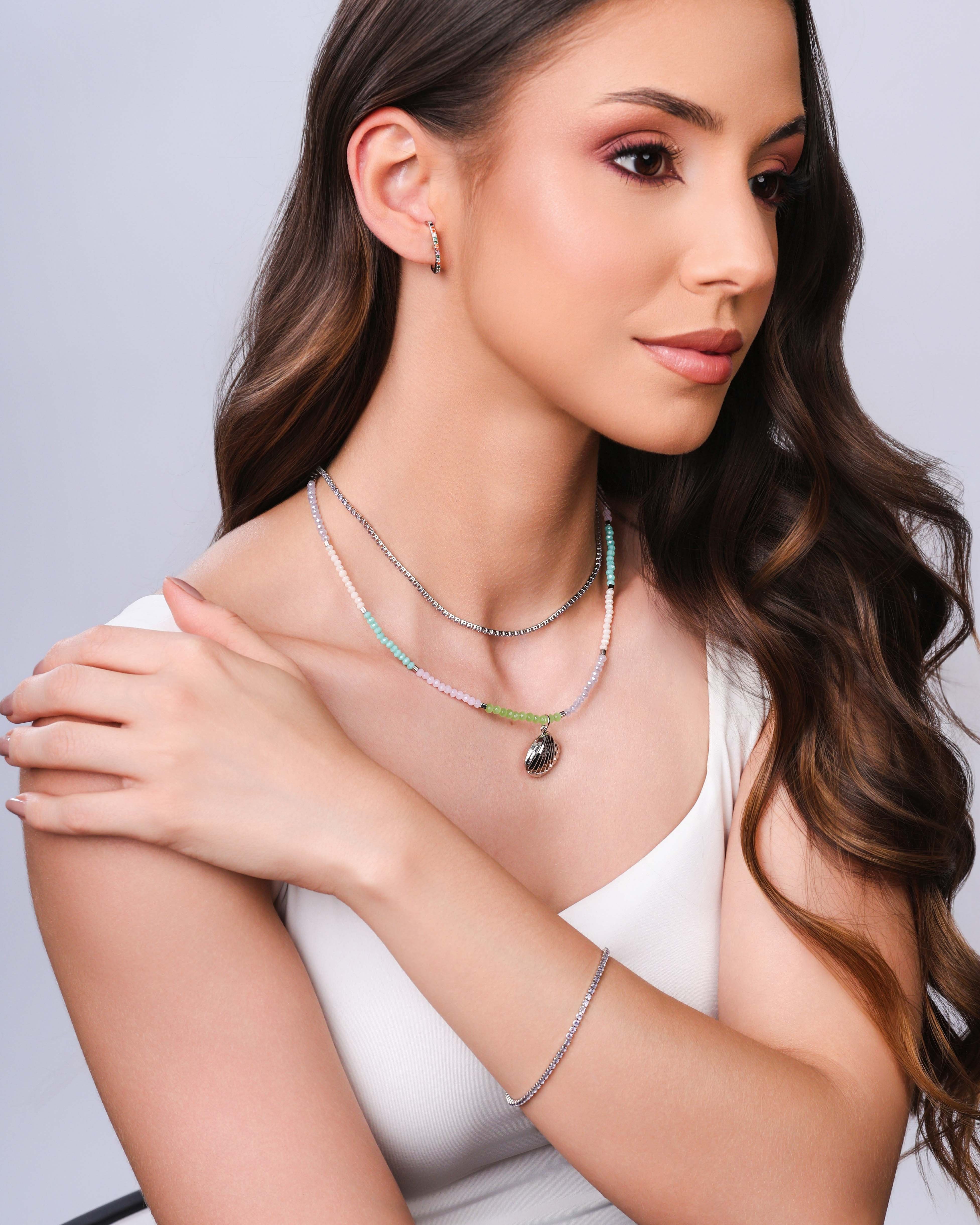 A Choker Riviera Ametista Ródio Branco é o equilíbrio perfeito entre delicadeza e brilho.
