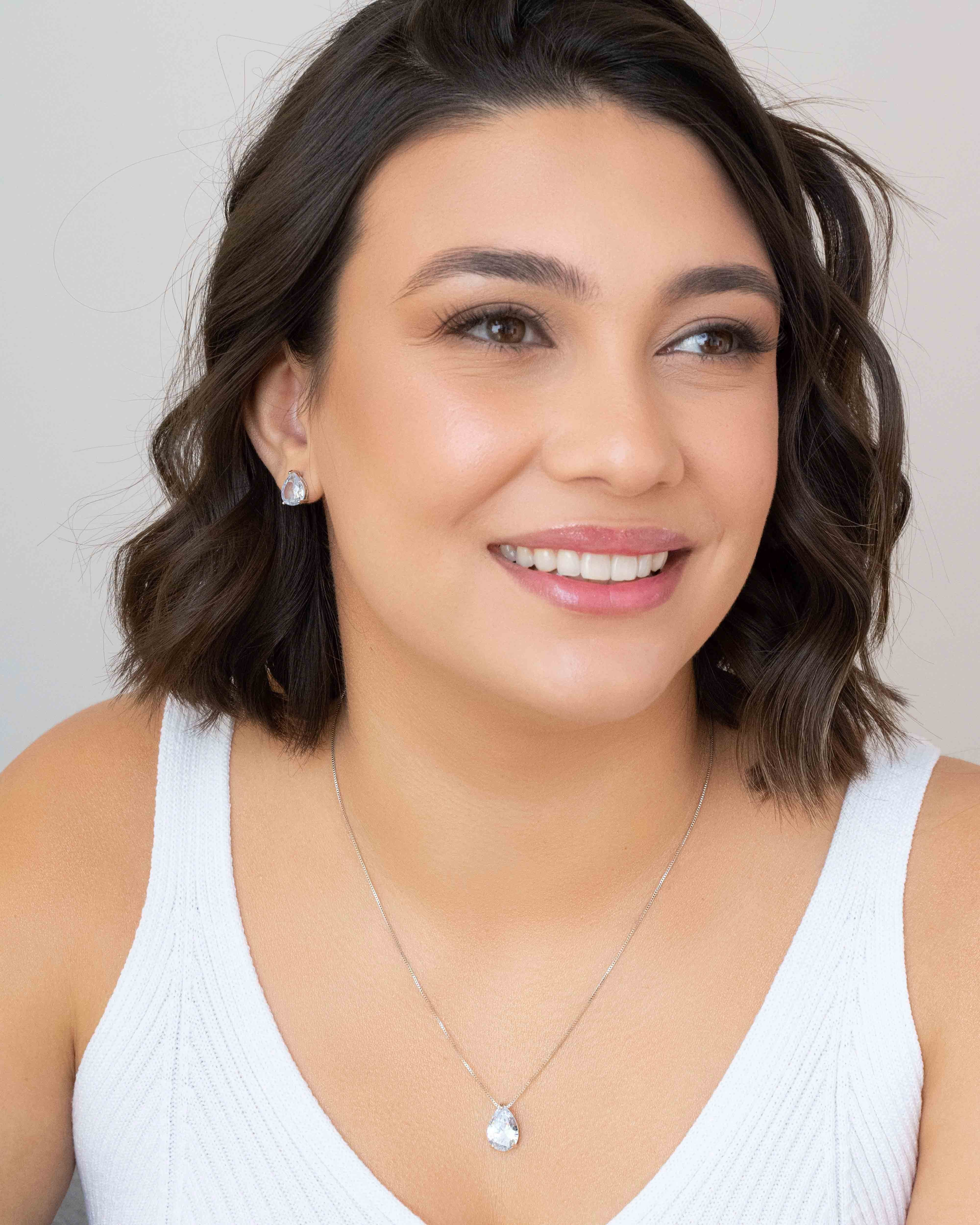Gargantilha 45 cm Extensor 5 cm Brinco Gota Altura 11 mm Largura 8 mm Pingente Gota Altura 15 mm Largura 10 mm Banho Branco Garantia 12 Meses Obs.: Medidas e cores apresentadas nas fotos podem sofrer pequenas alterações.