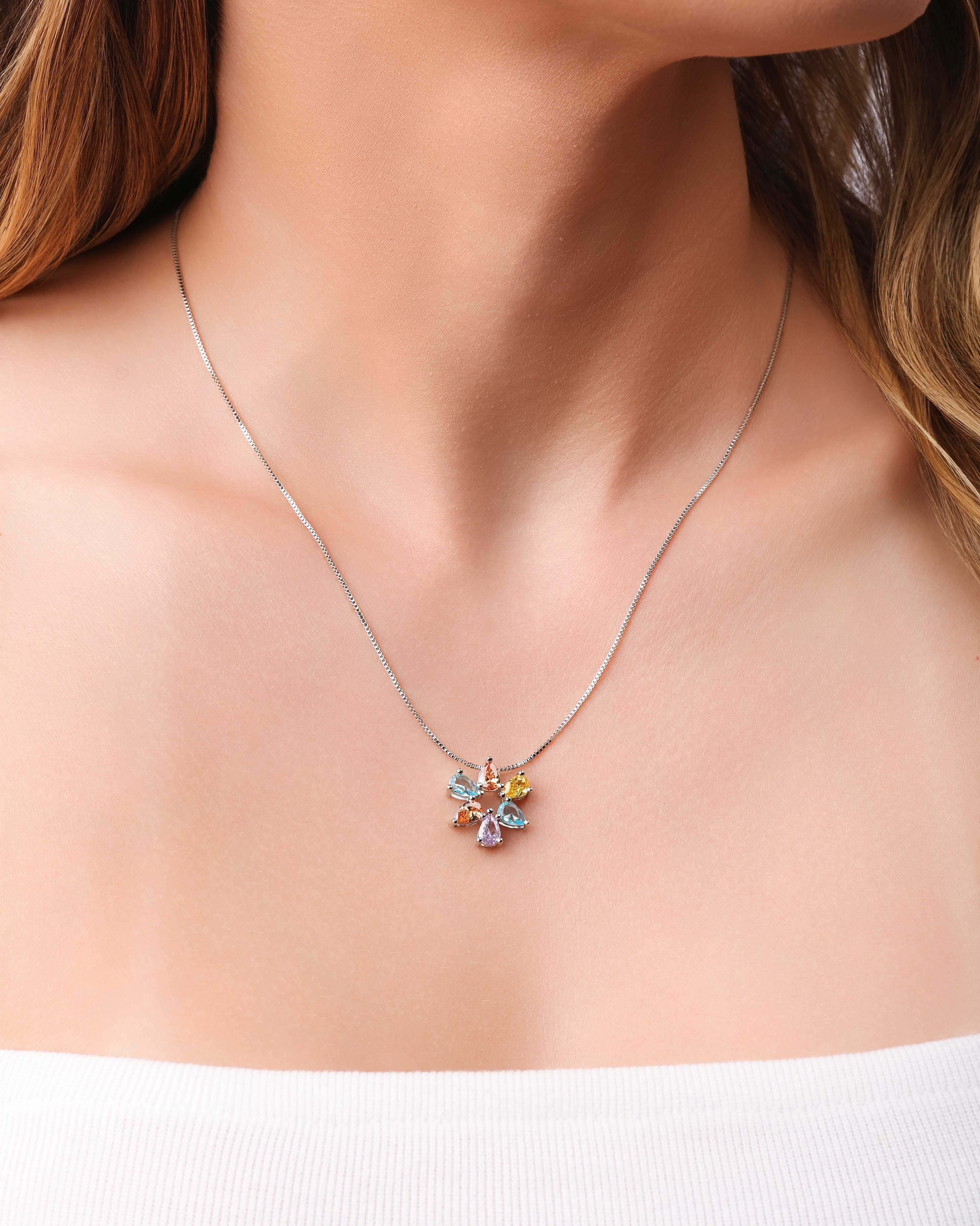O Conjunto Mandala Gotas Coloridas em banho ródio branco traz um visual moderno e delicado, com composição em mandala formada por gotas coloridas que iluminam o visual com suavidade. A combinação de cores cria um efeito leve e feminino, ideal para quem gosta de acessórios com personalidade e equilíbrio.