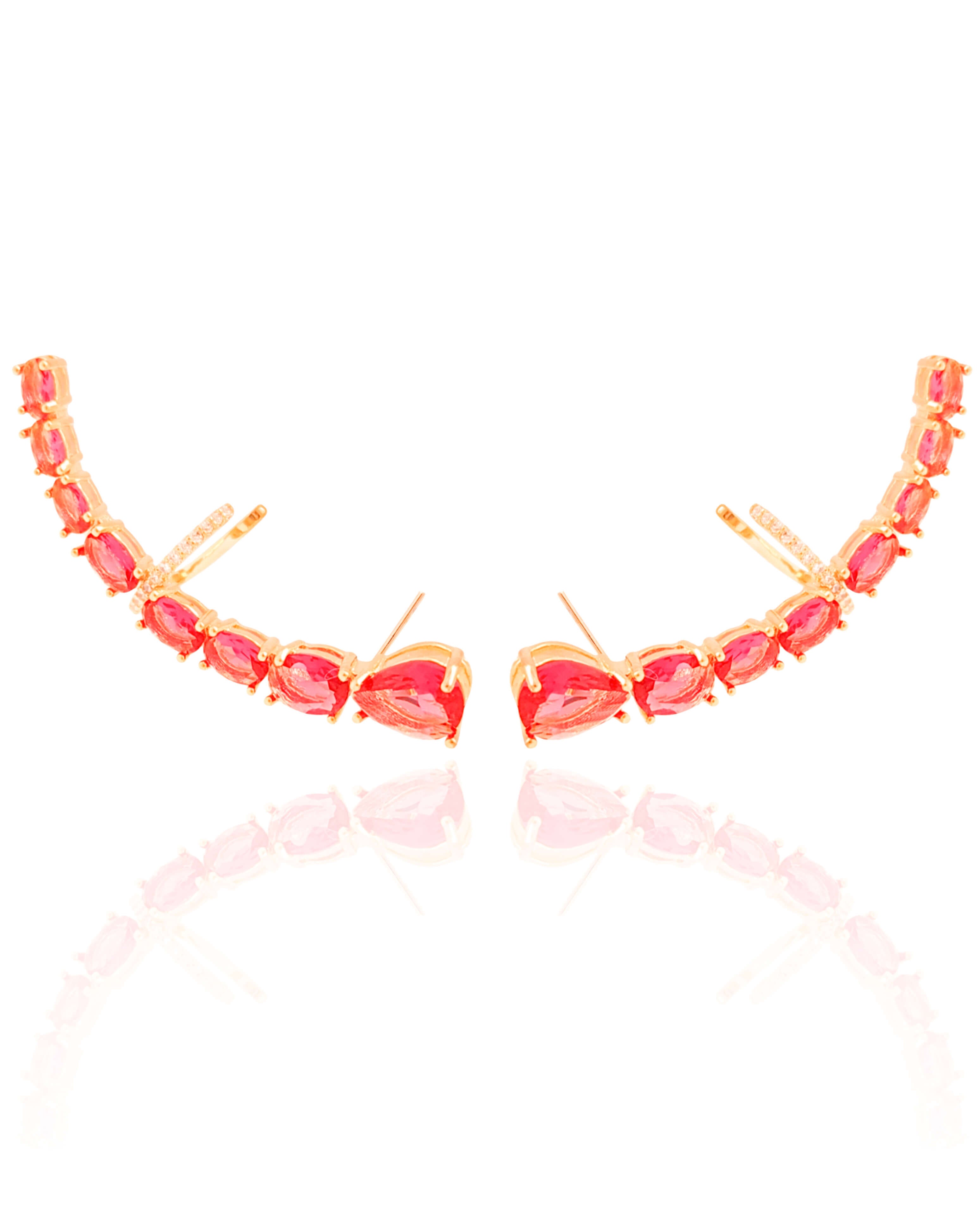 Ear Cuff Pontos de Luz Ovais Rubi Cravejado Cristal Banhado a Ouro 18K