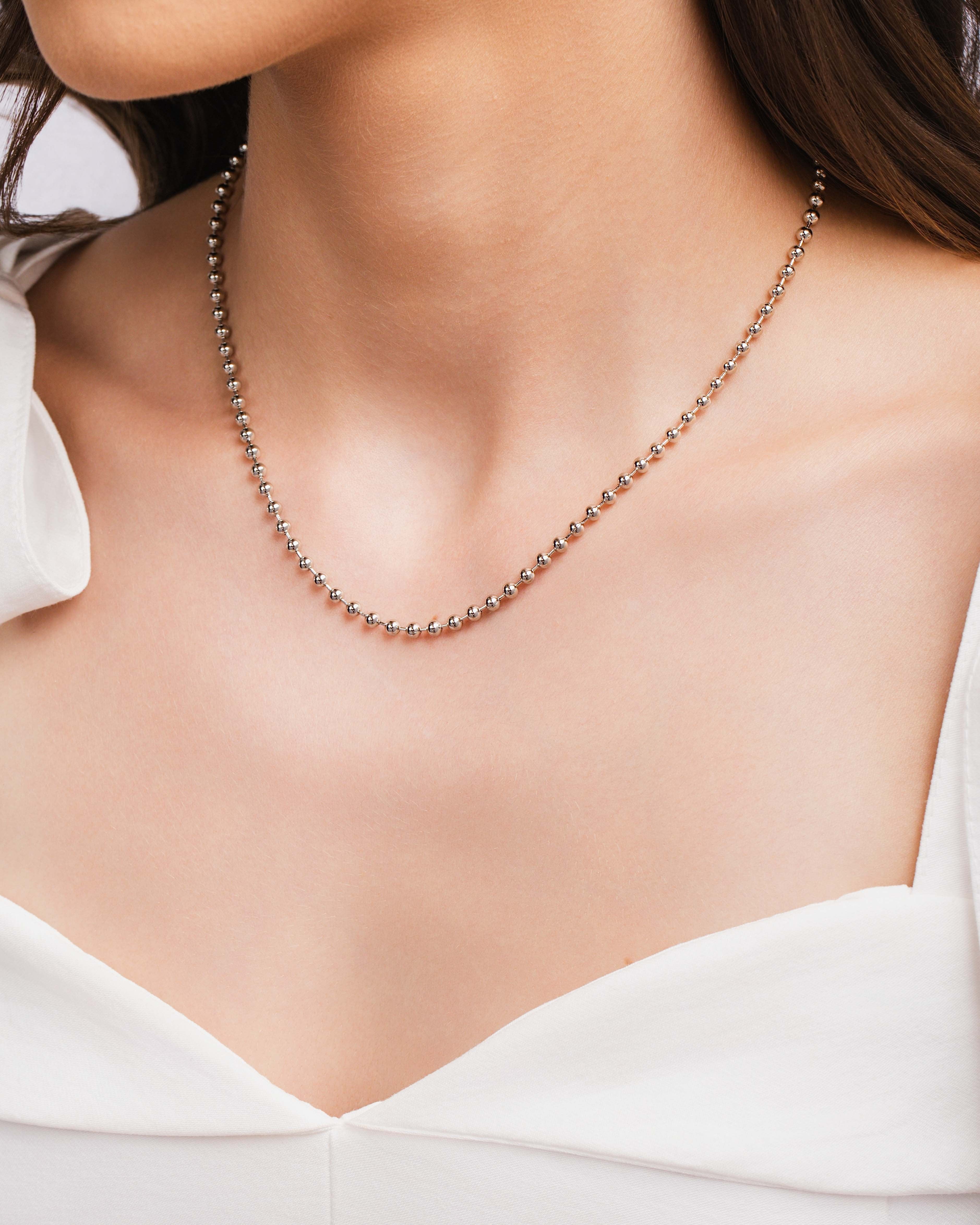 A Gargantilha Bolinhas Lisas 3 mm no banho de ródio branco traz um visual moderno e delicado, ideal para quem prefere acessórios claros e fáceis de combinar. As bolinhas lisas criam um efeito suave no colo, com brilho discreto e acabamento elegante.