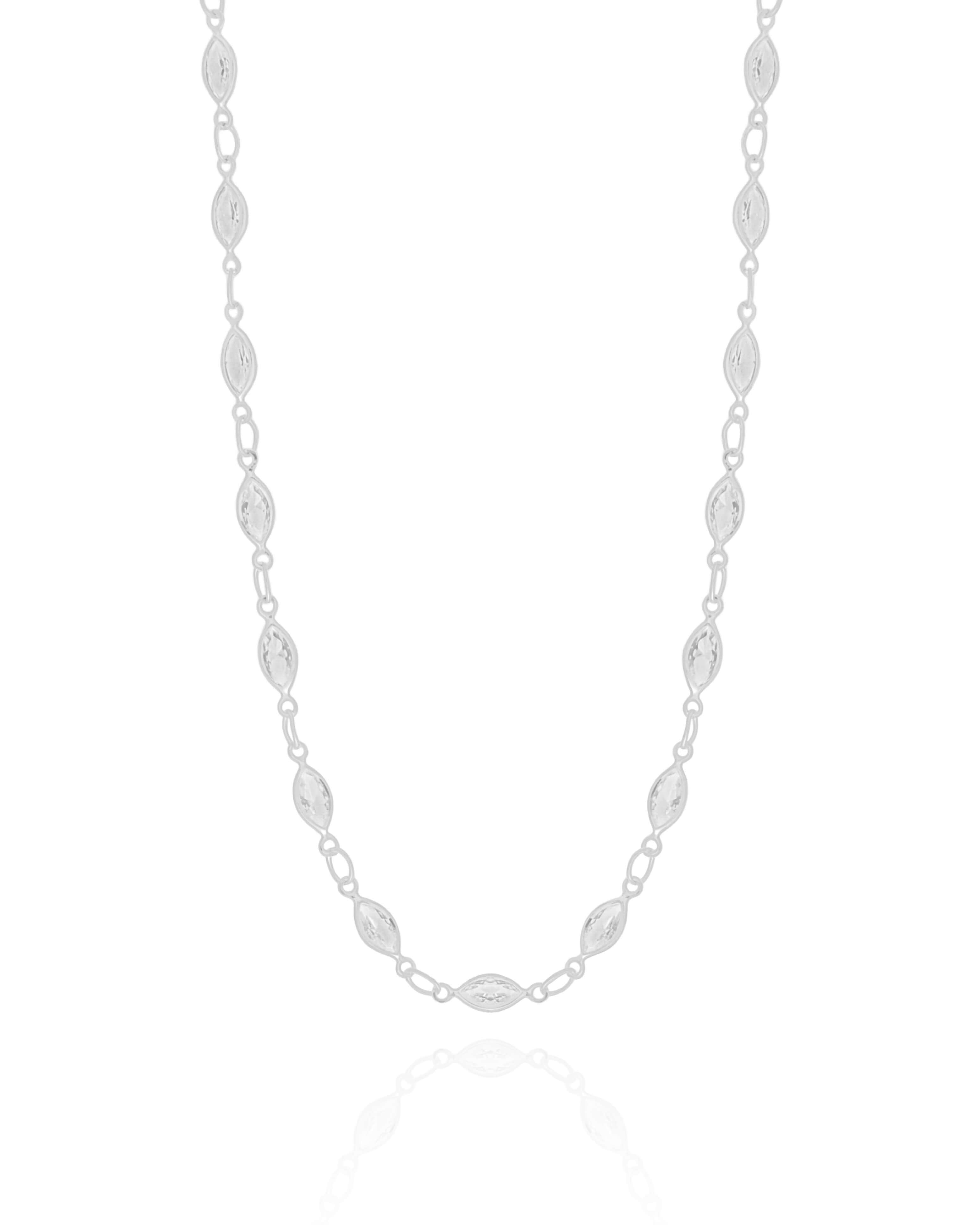 A Choker Zircônia Navete 32 cm banhada a ródio branco traz um visual delicado e feminino, com pequenas navetes de zircônias que criam um brilho contínuo e elegante ao redor do pescoço. O caimento tipo choker destaca naturalmente o colo e adiciona um toque moderno que funciona tanto no dia a dia quanto em produções mais sofisticadas.