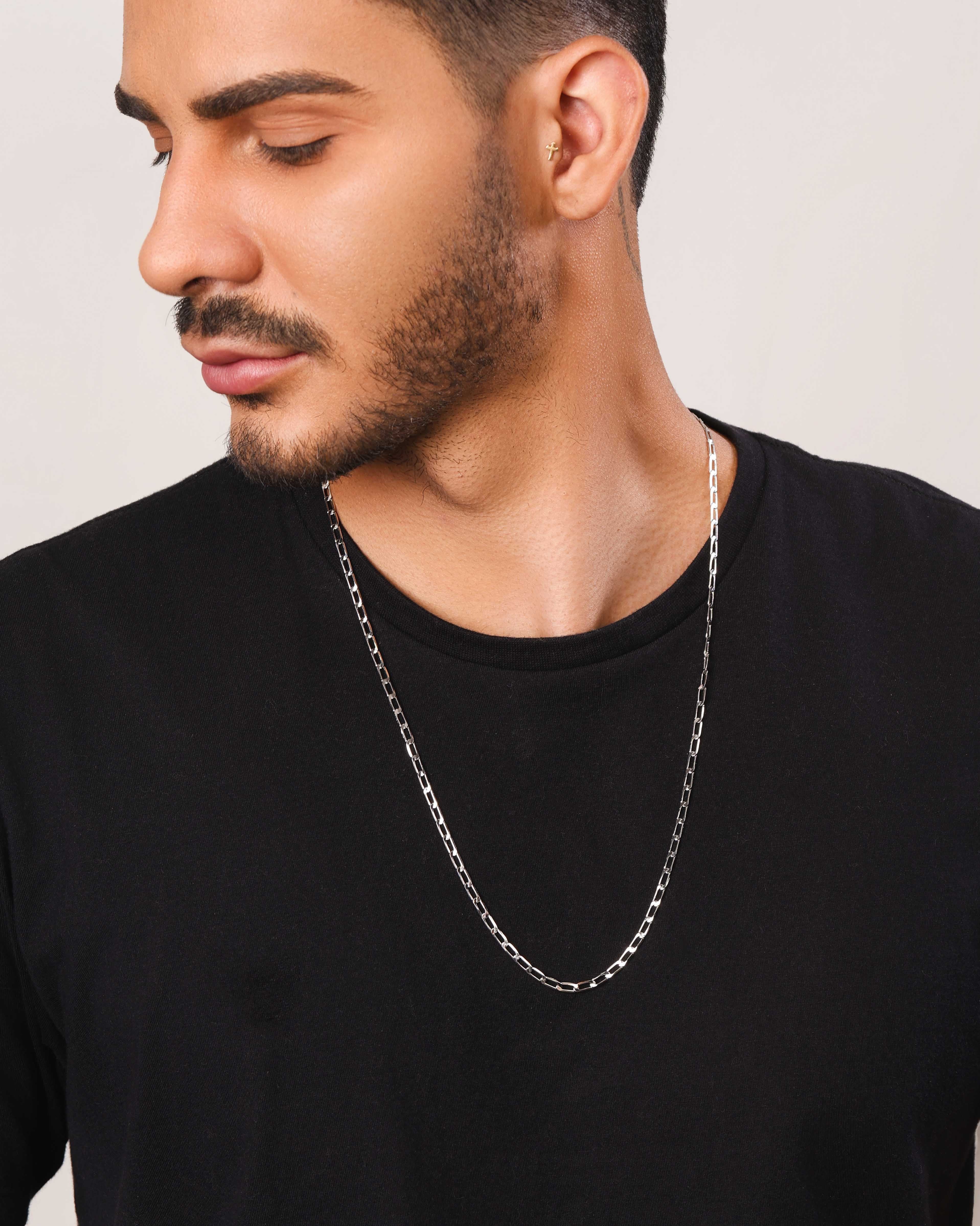 A Gargantilha Masculina Grumet 3 mm Ródio Branco é o equilíbrio perfeito entre discrição e presença. Seu design de elos alongados e polidos traz um toque sofisticado sem perder a força do estilo masculino, ideal para quem valoriza peças marcantes, mas com elegância na medida certa.