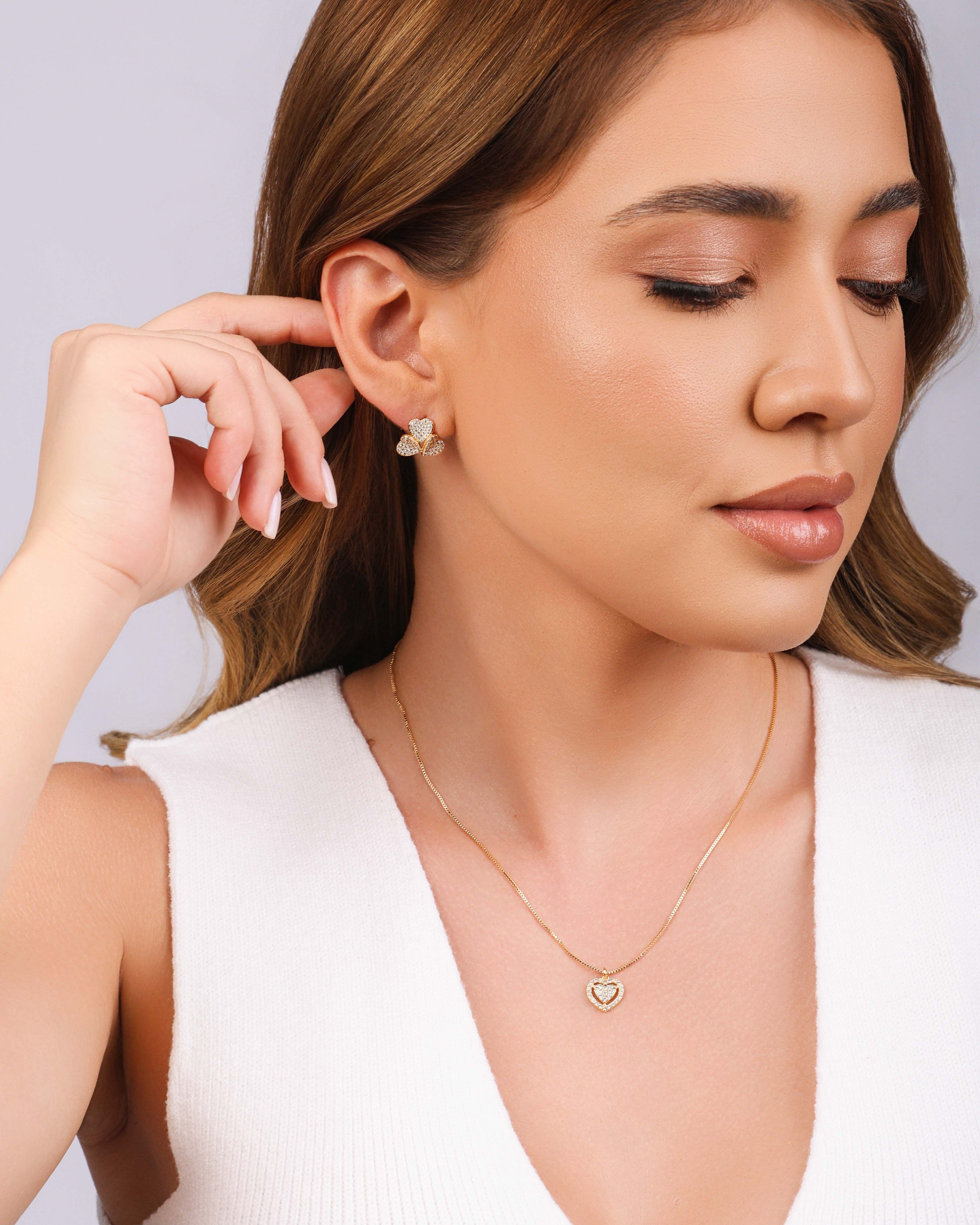 Essa gargantilha traz um coração delicadamente cravejado em cristais, criando um brilho suave que chama atenção na medida certa. O formato clássico do coração ganha leveza com o design vazado e acabamento delicado, valorizando o colo de forma elegante e feminina.