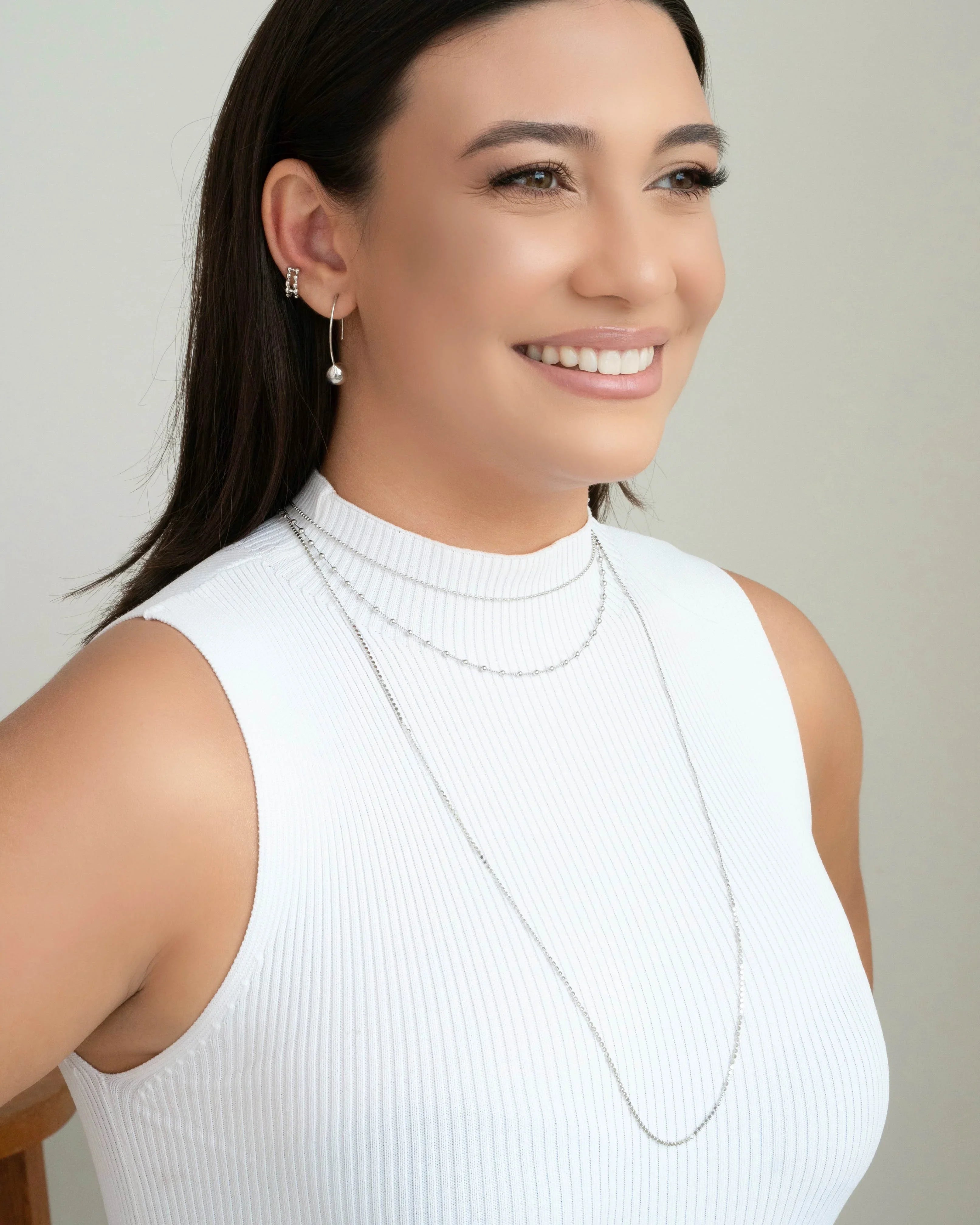 Piercing Dois Filetes Bolinhas Ródio Branco