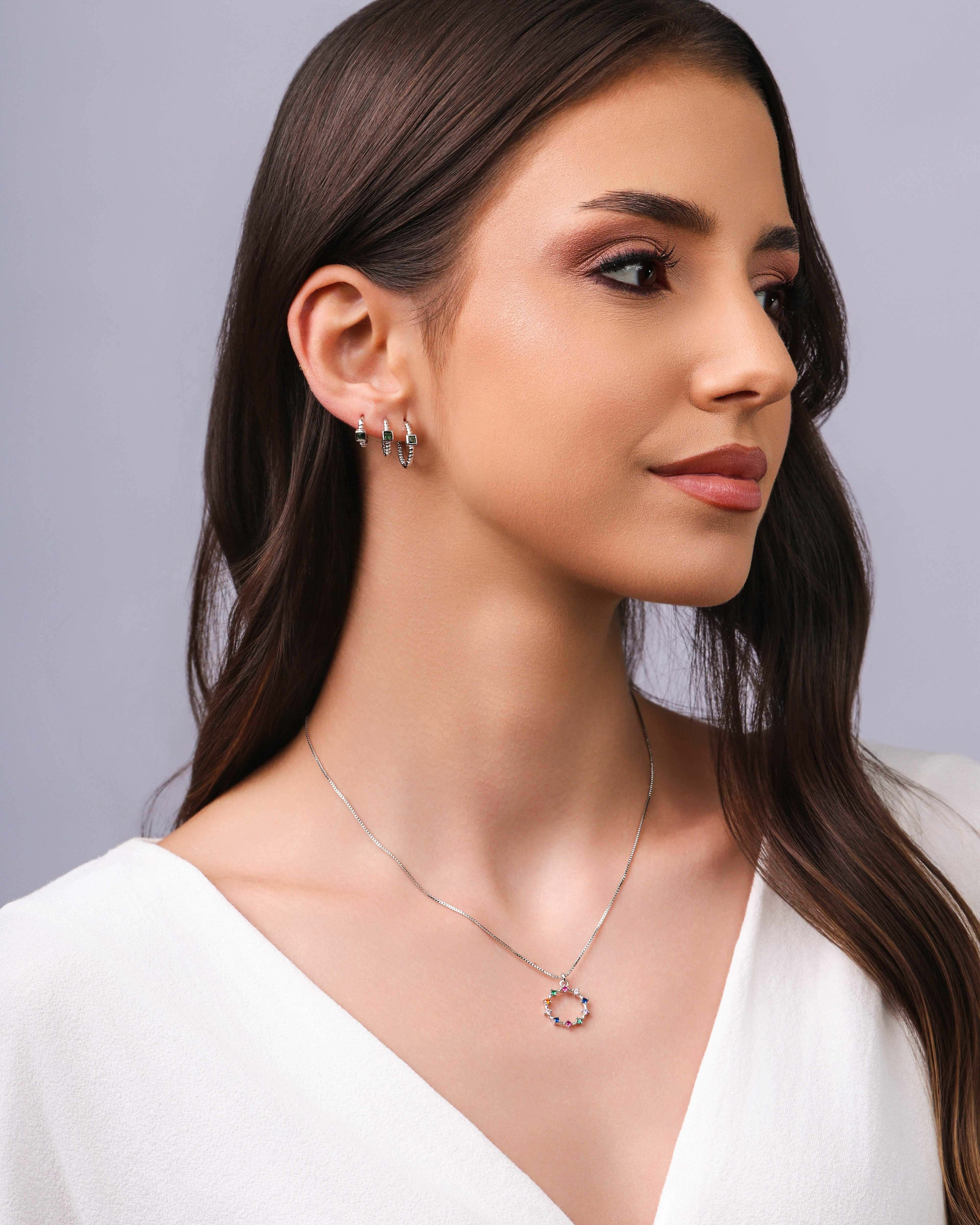 O Trio de Argolas Pontos de Luz Quadrados Esmeralda em banho ródio branco traz um visual moderno e delicado, ideal para quem gosta de acessórios femininos discretos e versáteis. Os três tamanhos permitem diferentes combinações, enquanto o ponto de luz quadrado em tom esmeralda acrescenta cor na medida certa.