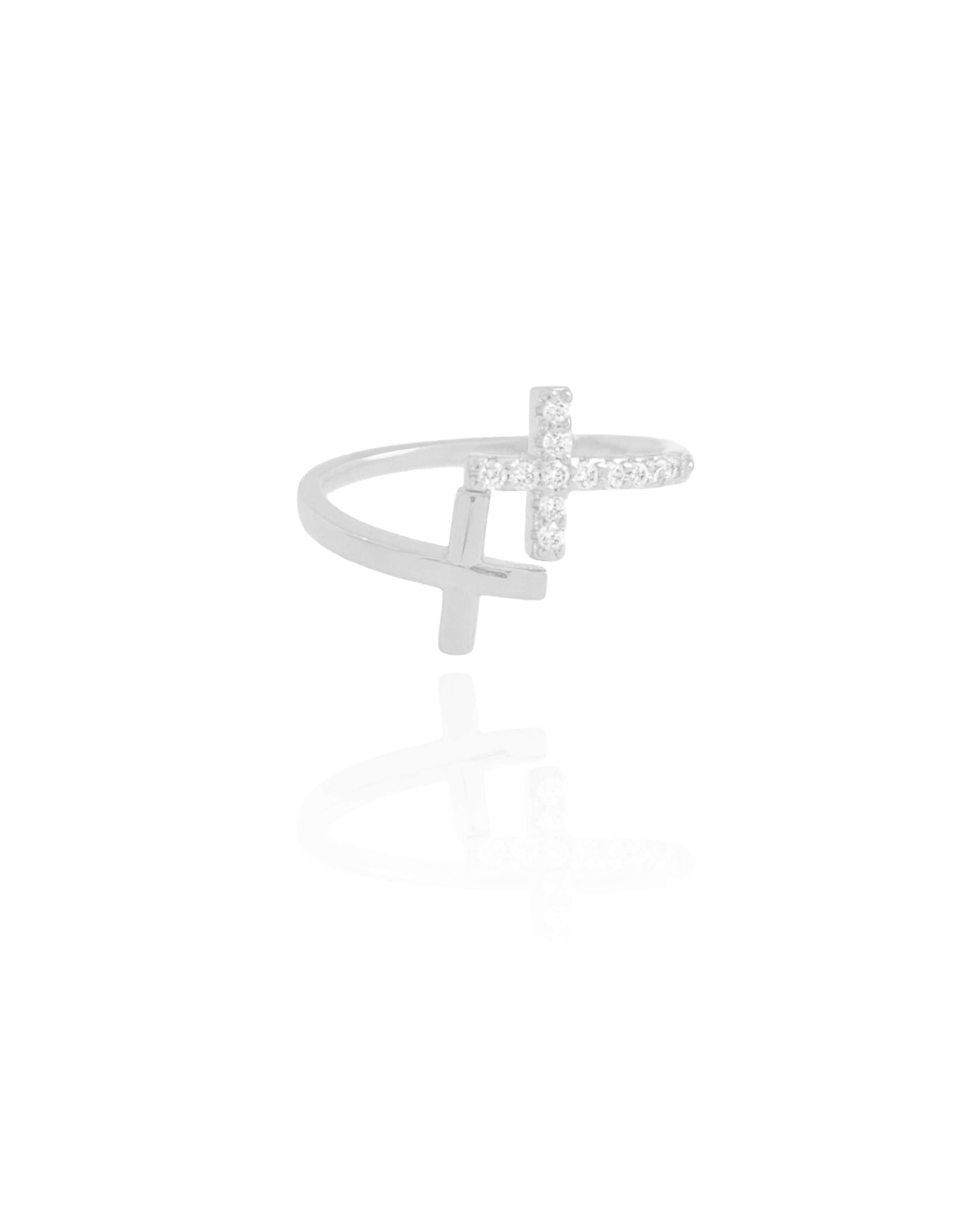 Anel Ajustável Cruz Cravejada e Lisa Tamanho P Ródio Branco