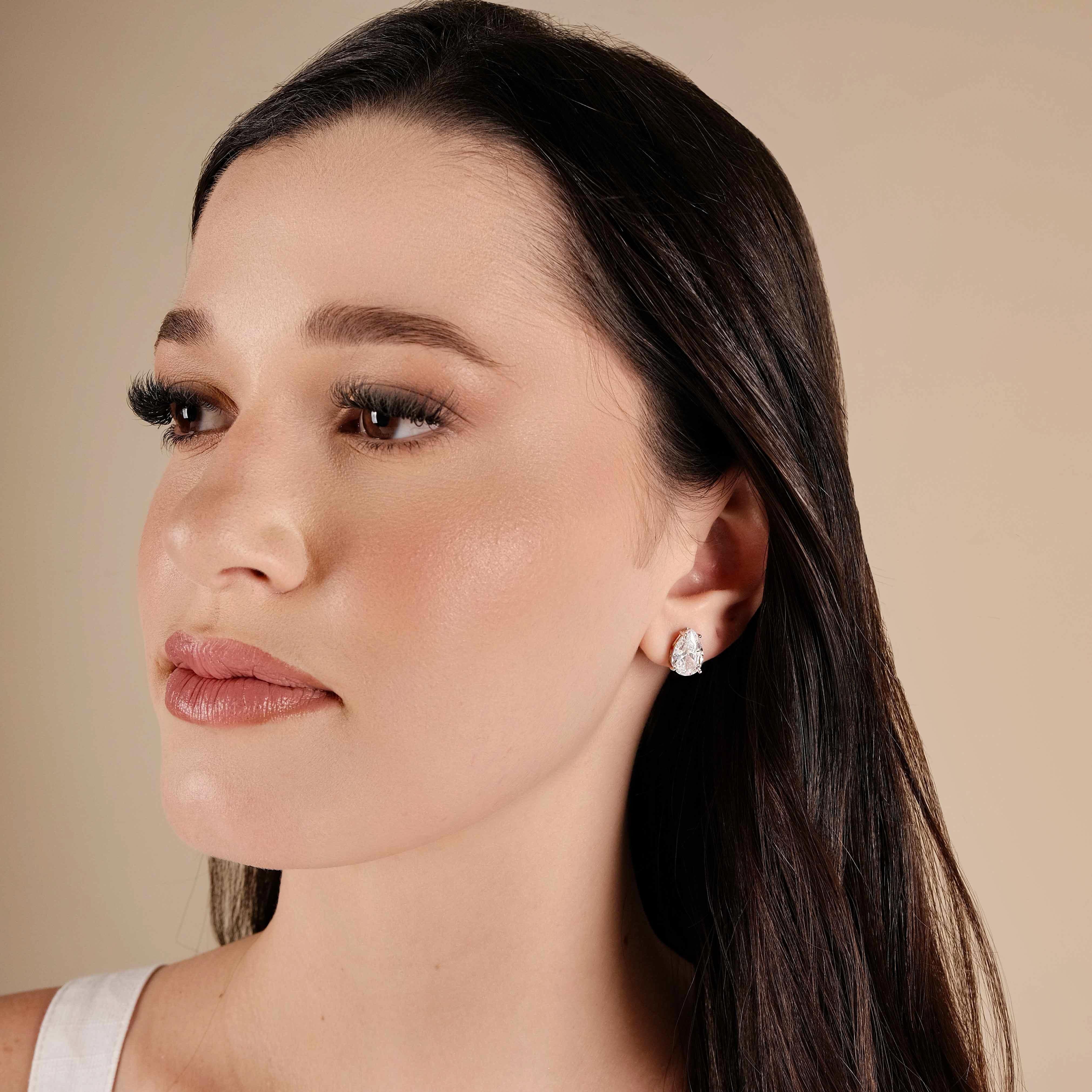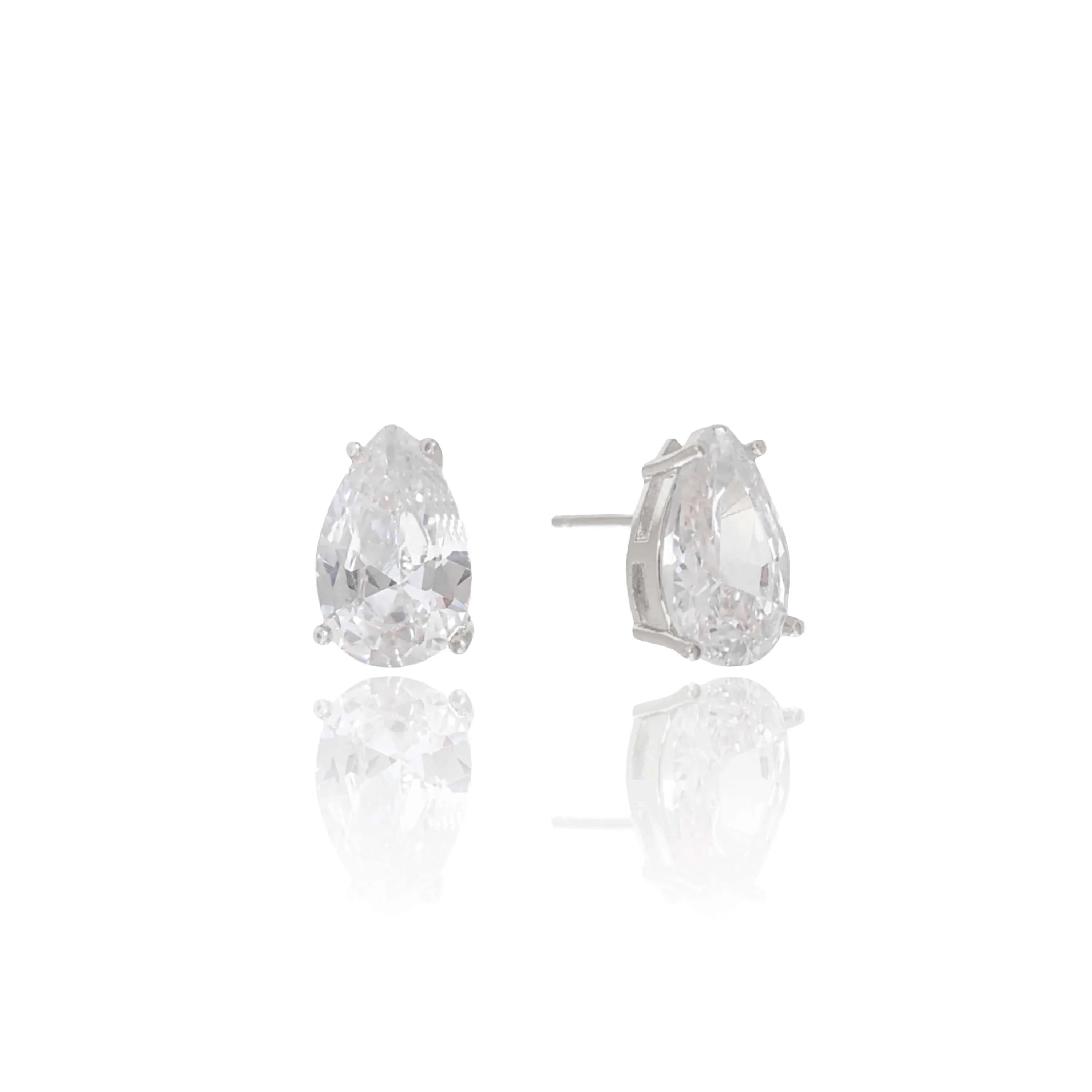 Brinco Gota 8x12 Cristal Ródio Branco