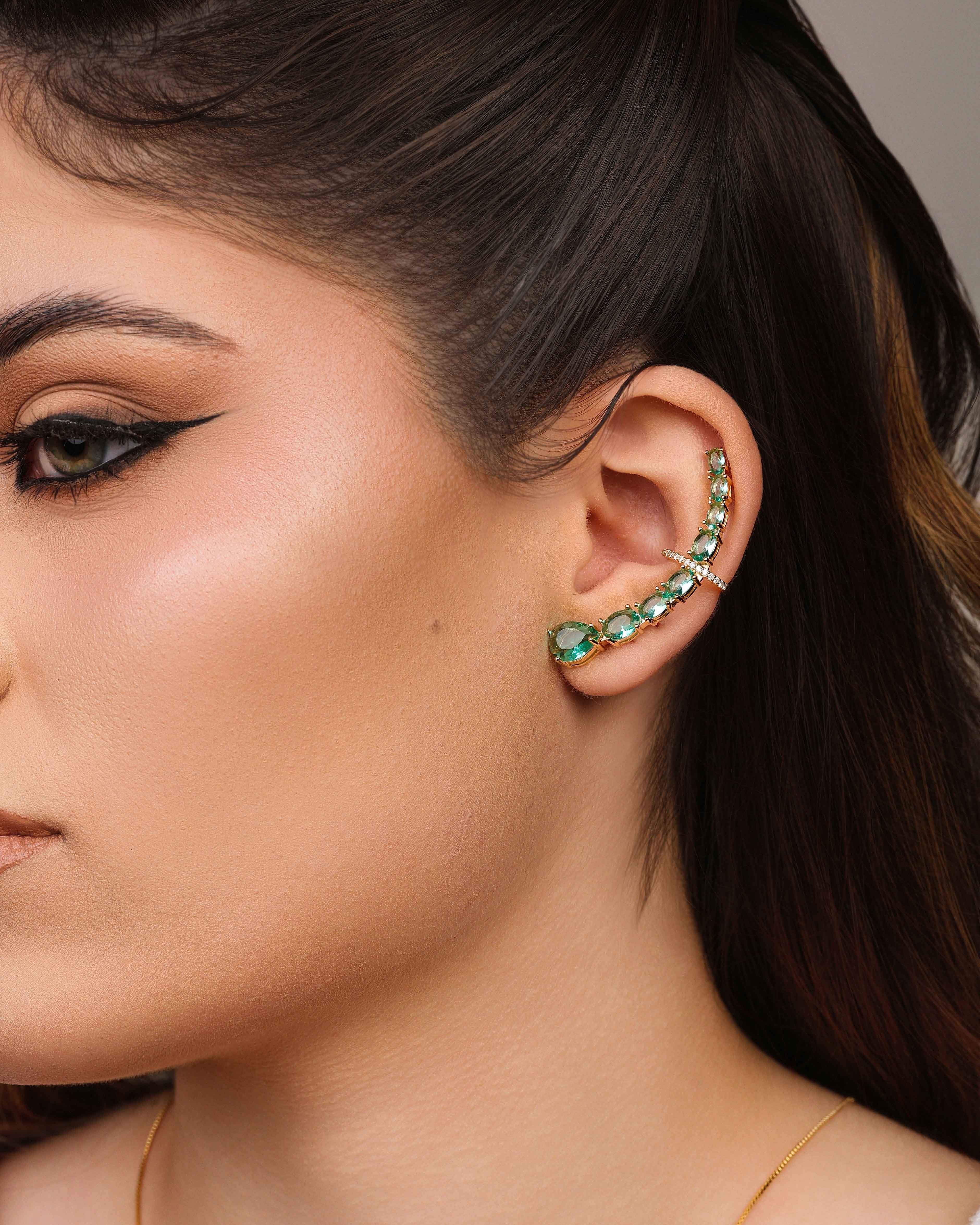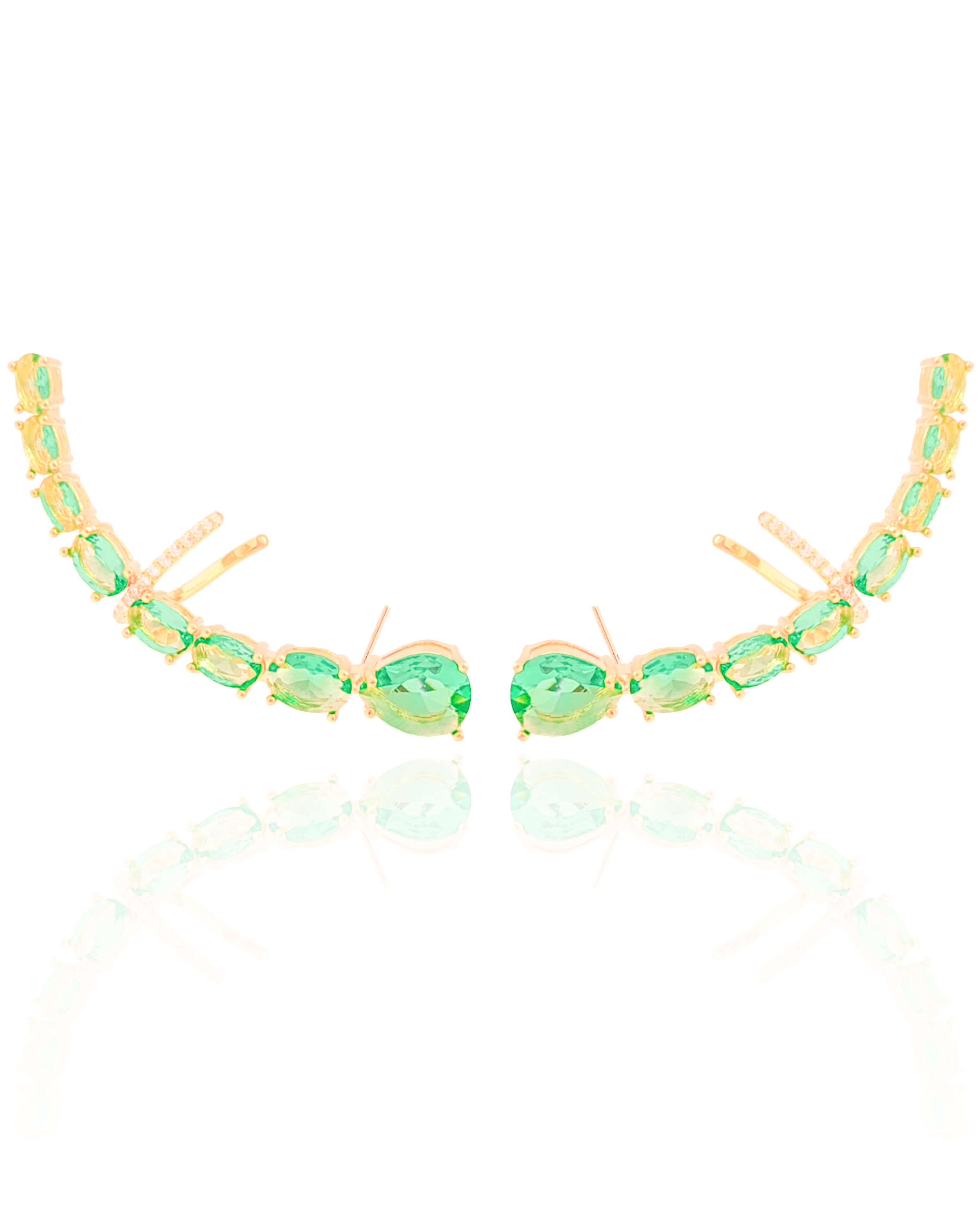 Ear Cuff Pontos de Luz Ovais Turmalina Cravejado Cristal Banhado a Ouro 18K