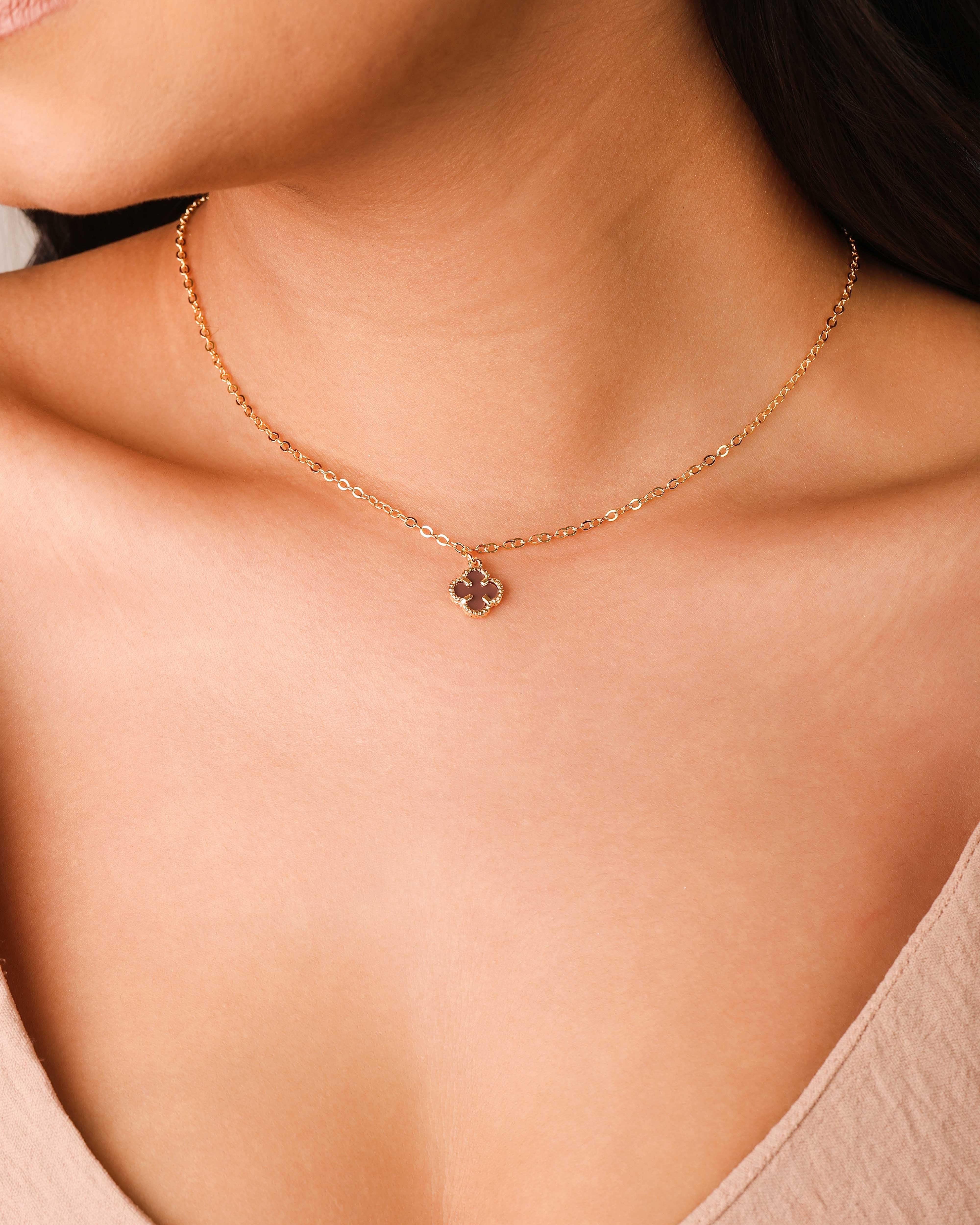 Gargantilha Elos Trevo Tom Rubi Banhado a Ouro 18K - 40 cm