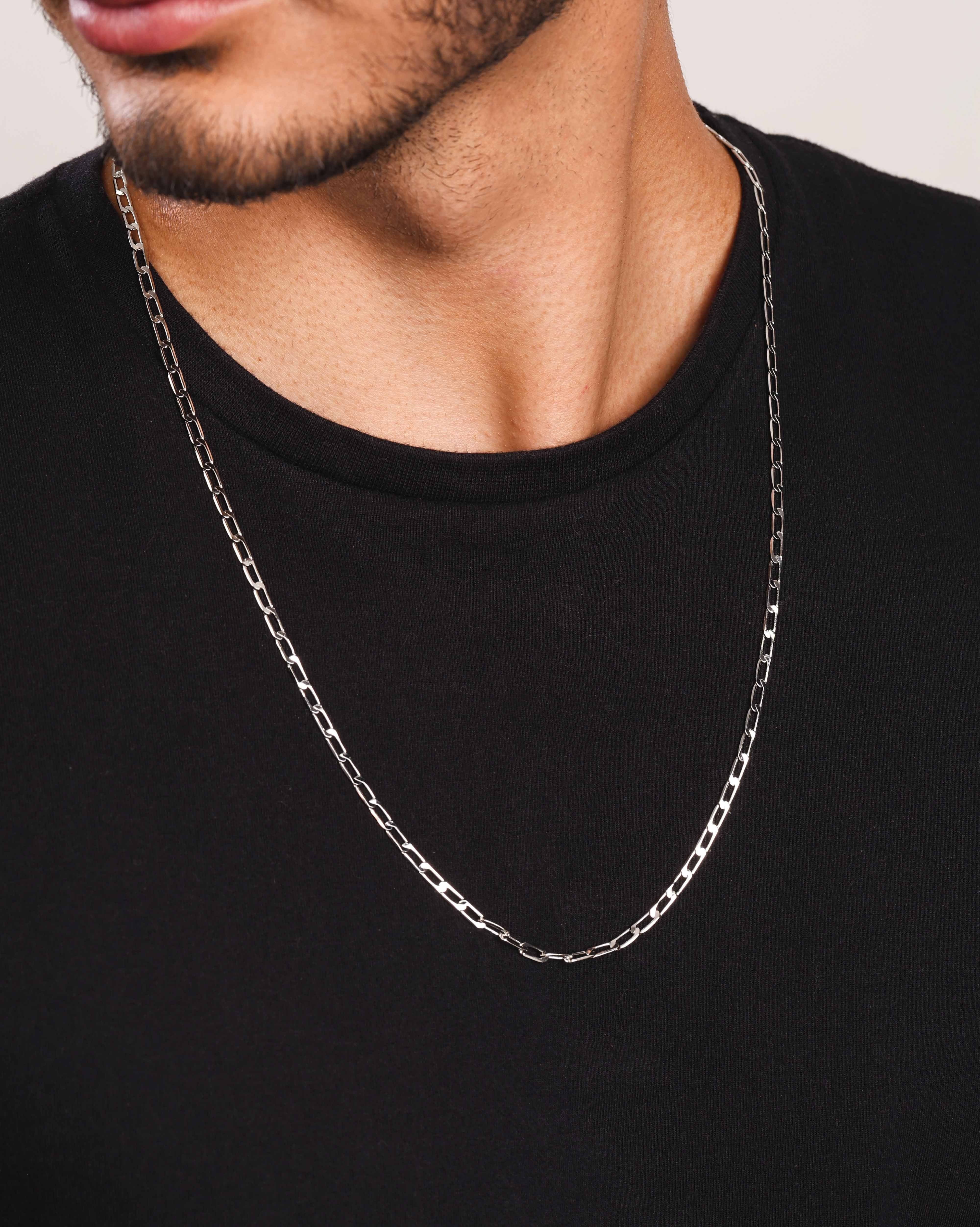 A Gargantilha Masculina Grumet 3 mm Ródio Branco é o equilíbrio perfeito entre discrição e presença. Seu design de elos alongados e polidos traz um toque sofisticado sem perder a força do estilo masculino, ideal para quem valoriza peças marcantes, mas com elegância na medida certa.